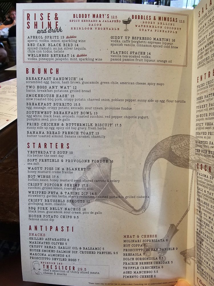 Culinary Dropout in Gilbert, AZ offers a diverse menu with options for everyone, including starters like BBQ Pork Belly Nachos and Crispy Brussels Sprouts, and sushi selections like California Roll and Spicy Tuna Crispy Rice. Noteworthy options include The Slicer, a chef's selection of thinly sliced meats, cheese, and snacks. This trendy and casual spot also provides vegan and vegetarian choices, making it suitable for various dietary preferences. The ambiance is hip and classy, with outdoor seating available. The restaurant offers various amenities such as free Wi-Fi, waiter service, and a full bar. Culinary Dropout is a great place for groups, families, or a solo dining experience with options for breakfast, brunch, lunch, dinner, and late-night bites. Overall, Culinary Dropout provides a diverse and enjoyable dining experience suitable for any occasion.